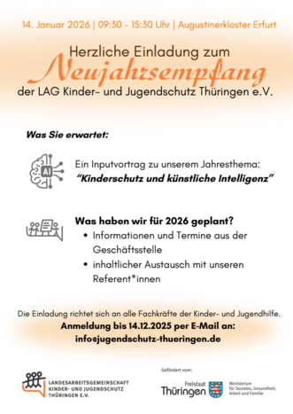 Für die Eröffnung laden wir zum Neujahrsempfang der LAG Kinder- und Jugendschutz Thüringen e.V. am Mittwoch, den 14. Januar 2026 im Augustinerkloster Erfurt ein.